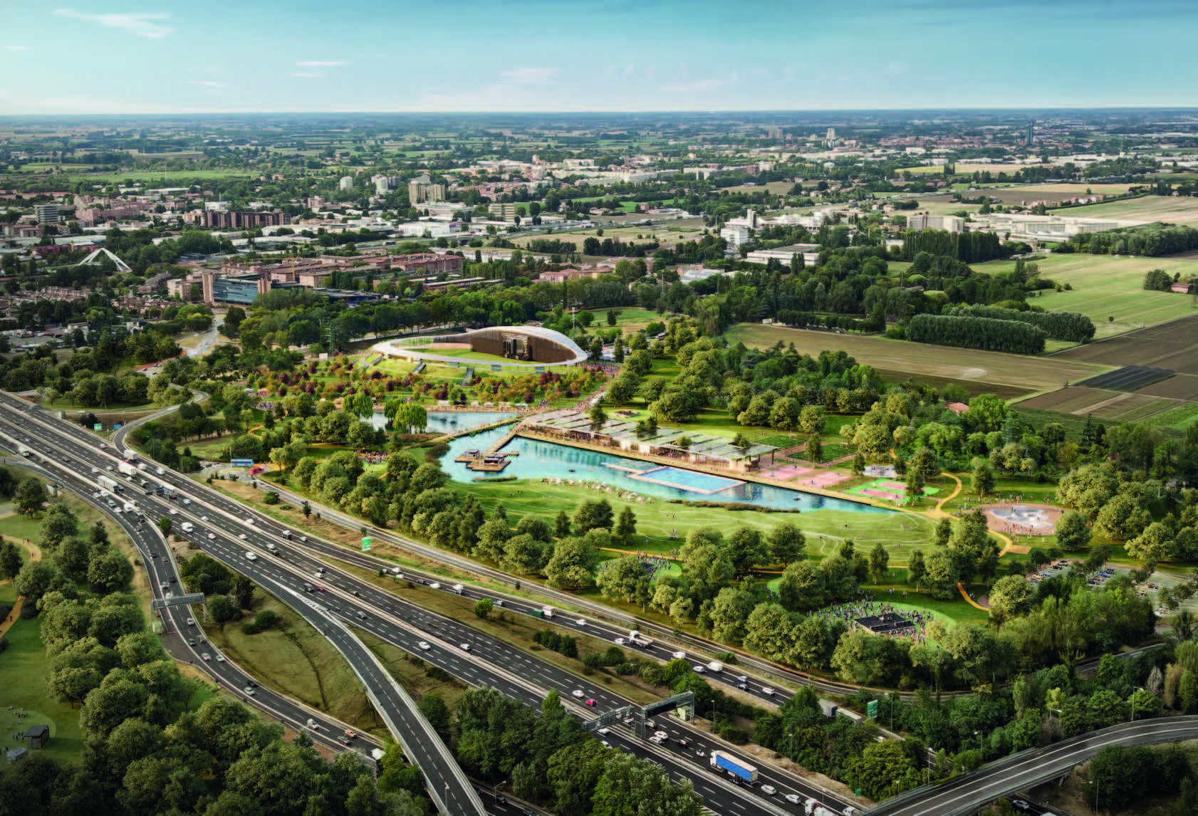 | Per realizzare e ospitare diverse funzioni: residenze ad uso abitativo, uffici, hotel, commercio, studentati e strutture per la ricerca e il benessere: | oltre 200.000 mq |
